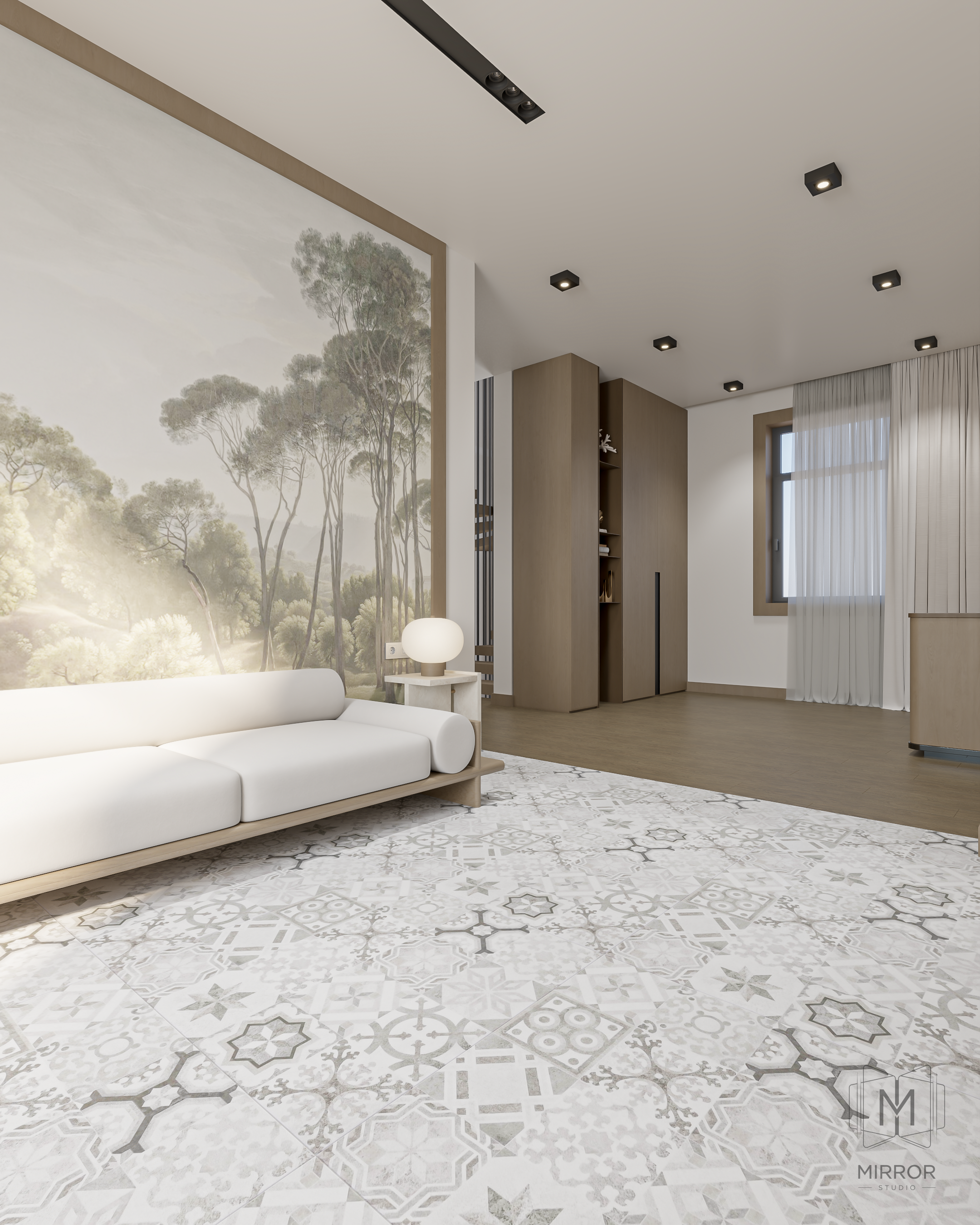 Mərdəkanda yerləşən bu həyət evi modern və etnik üslubun harmoniyası ilə formalaşdırılıb. Təbii materiallar, teksturalar və isti rəng palitrası interyerə səmimi və rahat ab-hava qatır. Funksional planlama və balanslı dizayn sayəsində məkan həm estetik, həm də komfortlu yaşayış üçün düşünülüb.