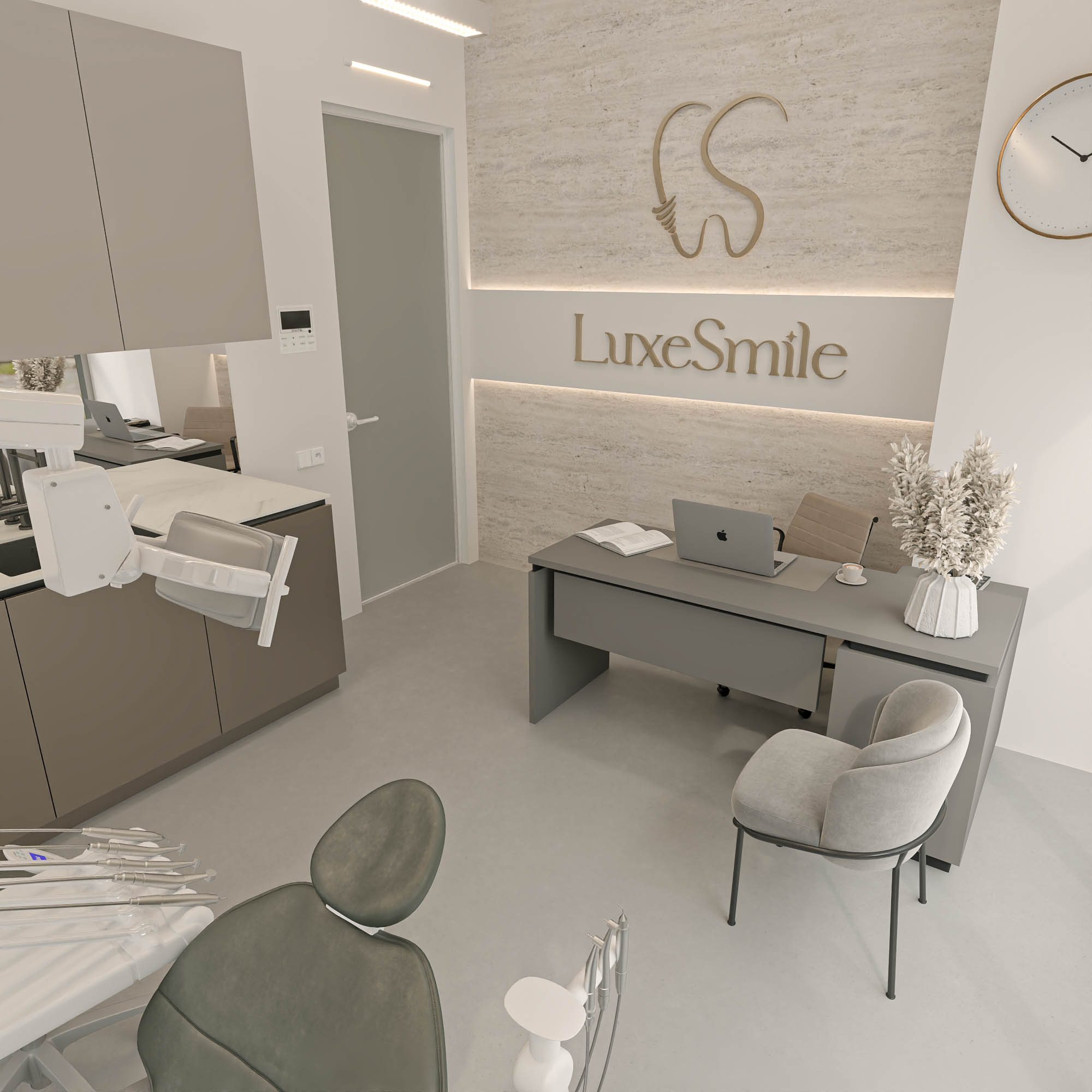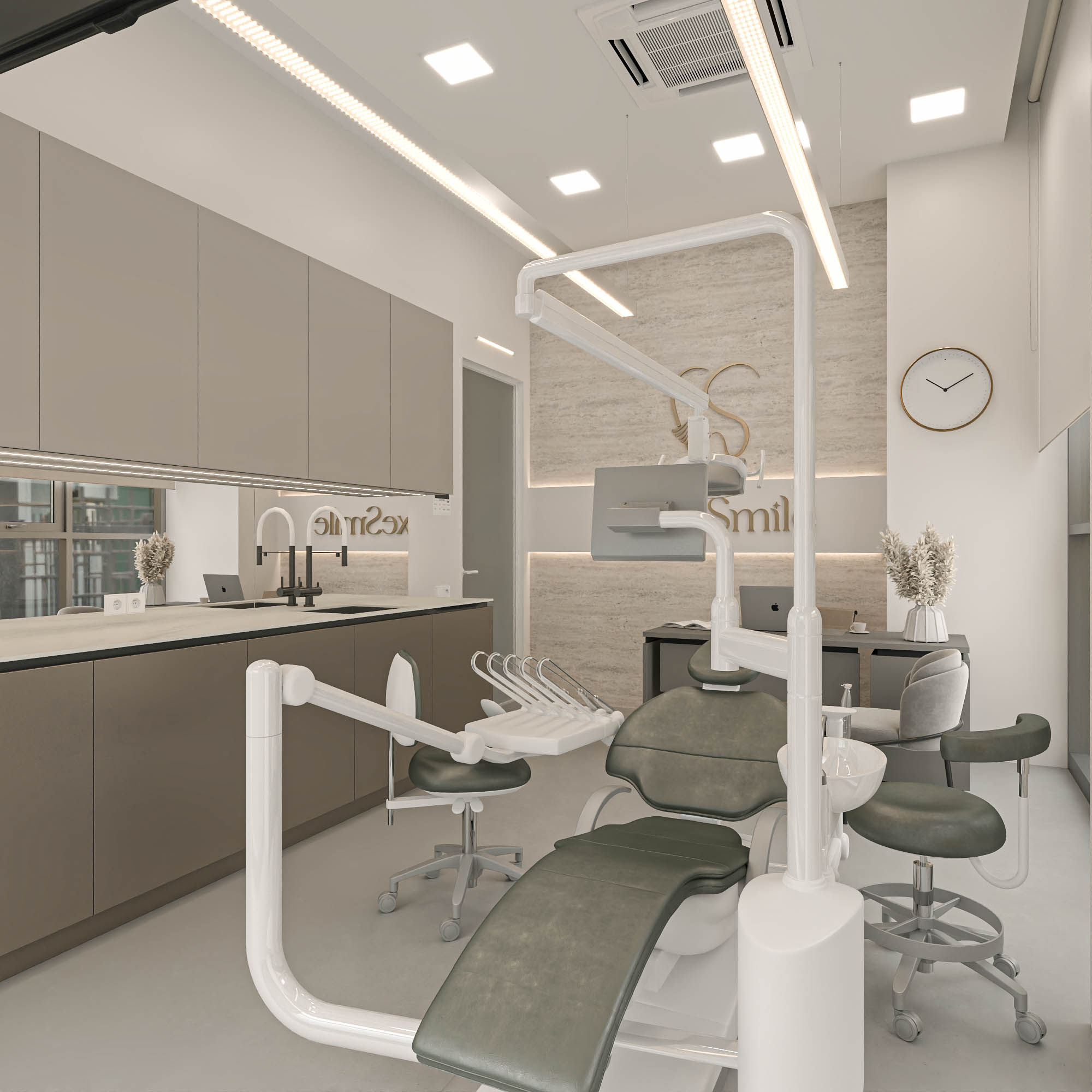 2024-cü ildə layihələndirilmiş, 170 kv.m sahəyə malik bu modern stomatoloji klinika funksionallıq və estetik balansın mükəmməl vəhdətidir. Dəqiq planlama, yüksək standartlara uyğun material seçimi və steril, komfortlu mühit klinikanı müasir tibbi məkan anlayışının premium nümunəsinə çevirir.